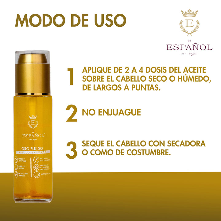 Fluido termoprotector Oro Fluido - deja increíbles destellos dorados en el cabello